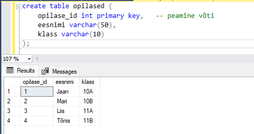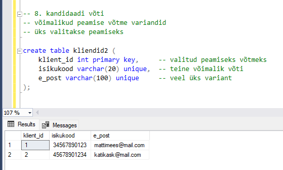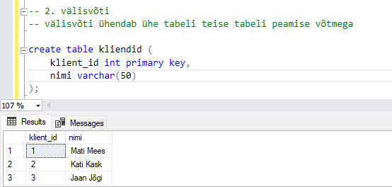 klient_id int primary key,     -- valitud peamiseks võtmeks