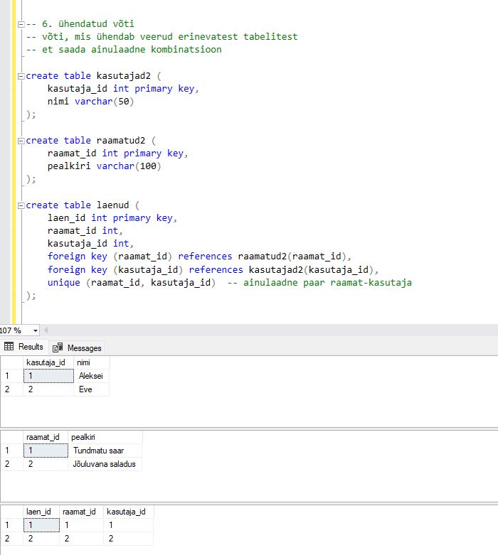 unique (raamat_id, kasutaja_id)  -- ainulaadne paar raamat-kasutaja