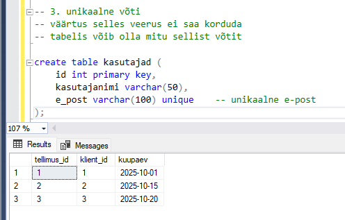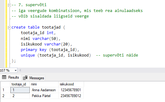 unique (tootaja_id, isikukood)  -- supervõti näide