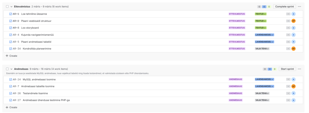 Timeline ja sprintide vaade