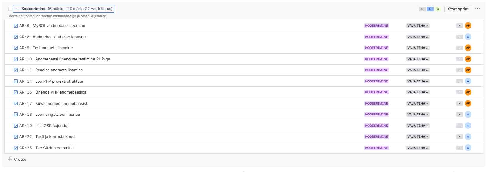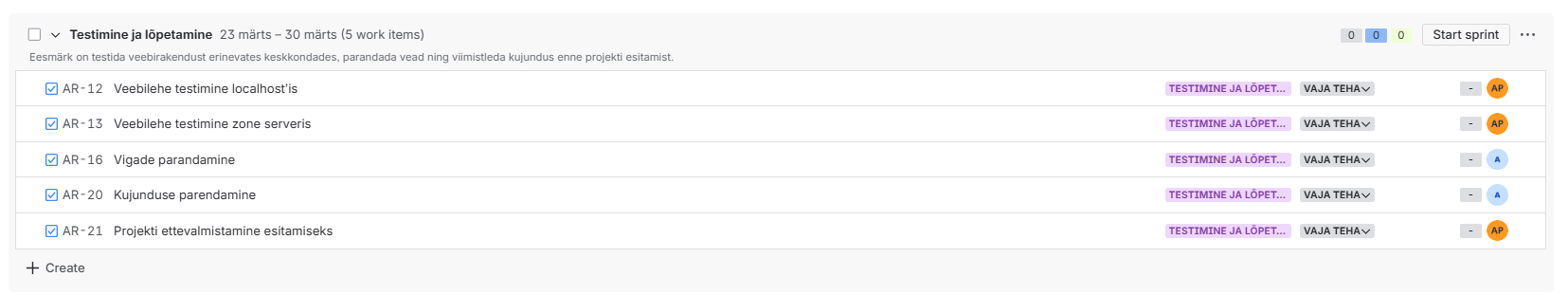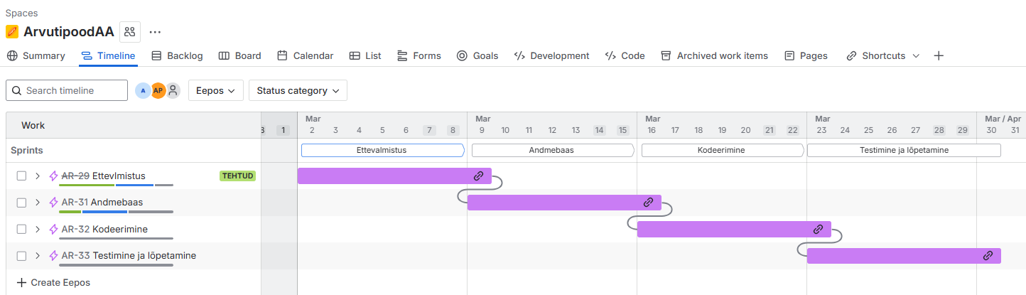 Timeline ja sprintide vaade