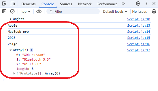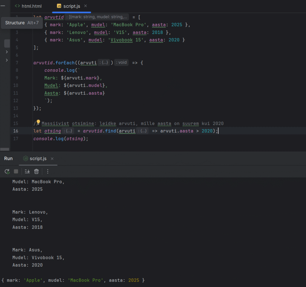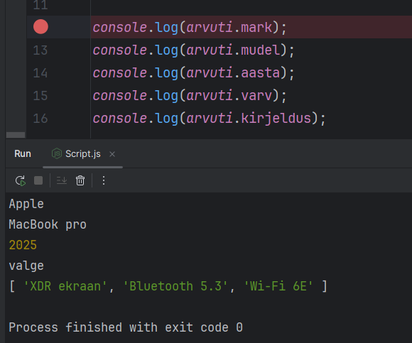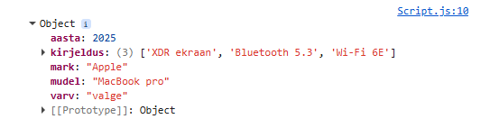 { mark: 'Apple', mudel: 'MacBook pro', aasta: 2025 },