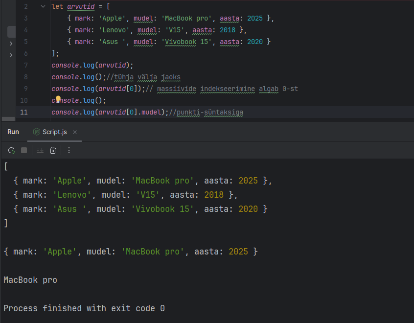 //console.log(arvutid[0]);// massiivide indekseerimine algab 0-st
