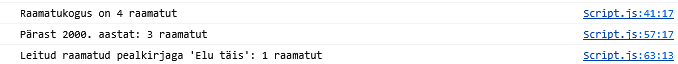 pealkiri,autor,aasta) veebileheoutput1elemendis ja ka konsoolis.