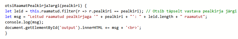 let leid = this.raamatud.filter(r => r.pealkiri == pealkiri); // Otsib täpselt vastava pealkirja järgi