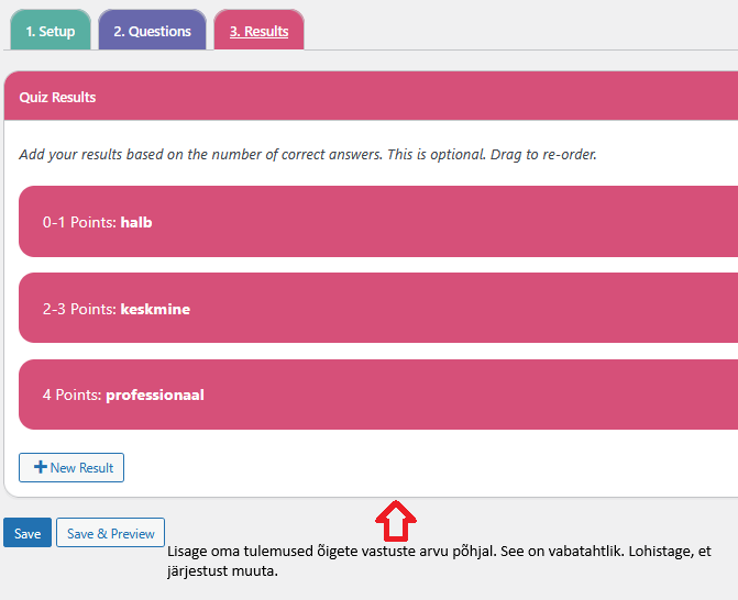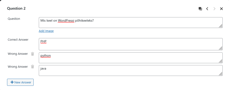 - Viktoriin kohese tagasisidega (Weighted Answers)- Kasutaja näeb vastuse õigsust kohe pärast valiku tegemist.