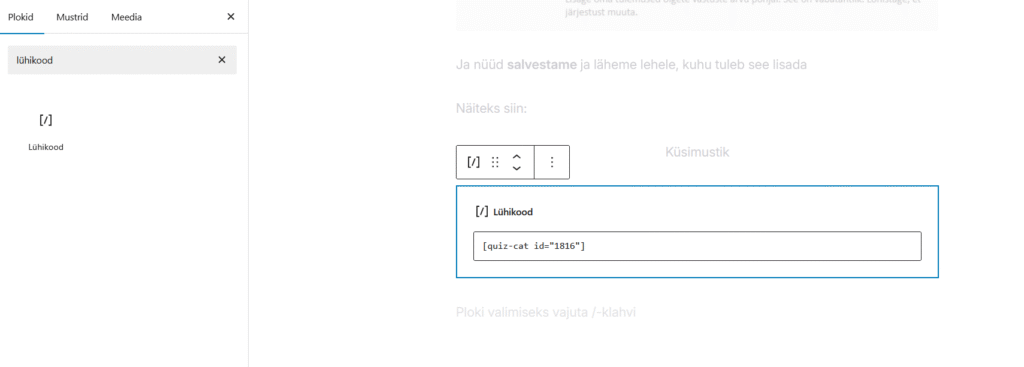Ja nüüd salvestame ja läheme lehele, kuhu tuleb see lisada