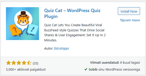 Quiz Cat võimaldab luua interaktiivseid viktoriine ja teste oma WordPressi veebilehele.